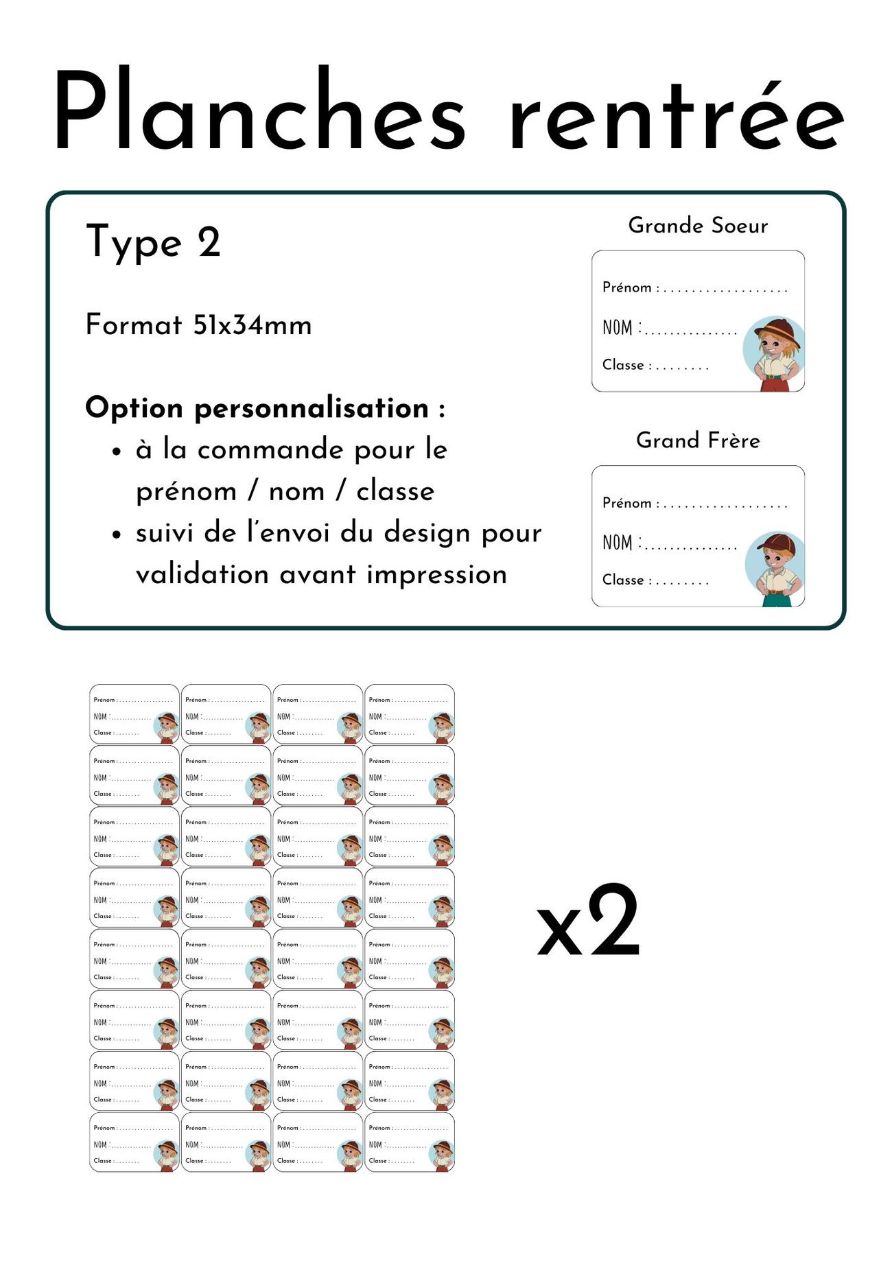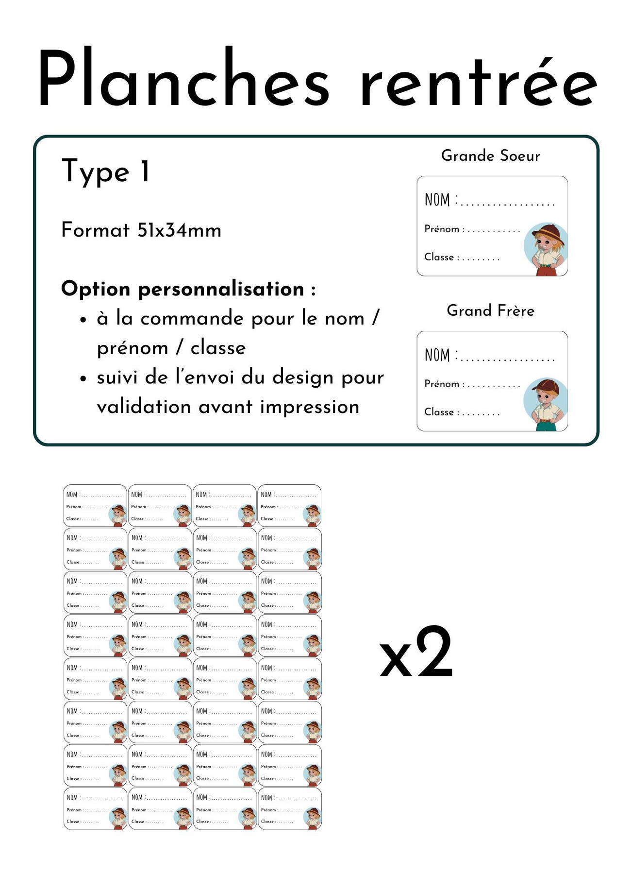 "Planche rentrée" - 64 Etiquettes scolaires